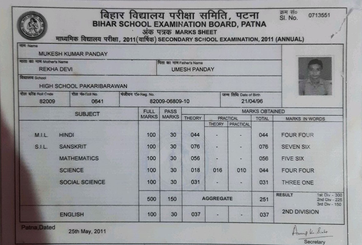 | Exam | Full Marks | Pass Marks | Marks Obtained |