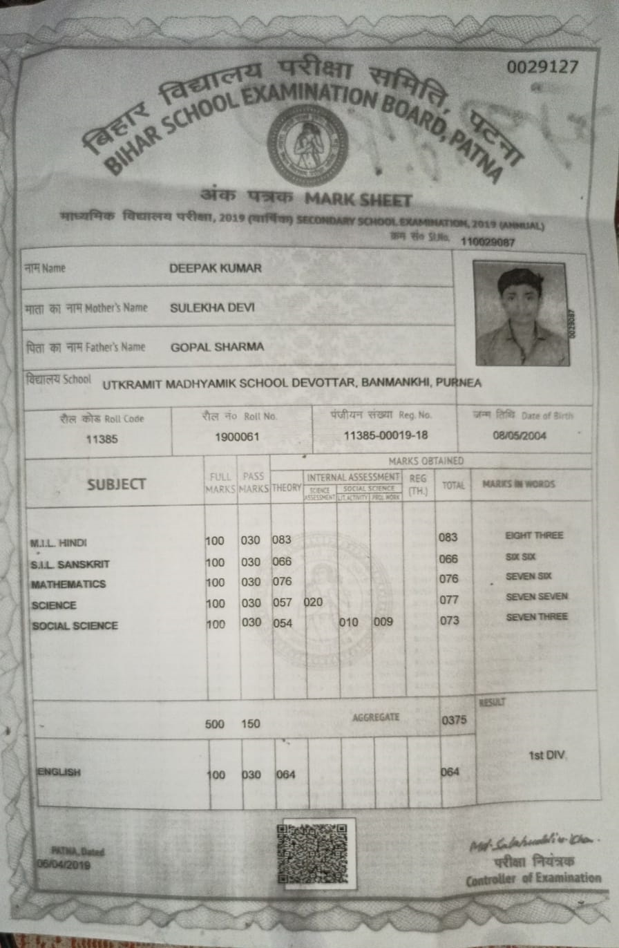 | Exam | Full Marks | Pass Marks | Marks Obtained |