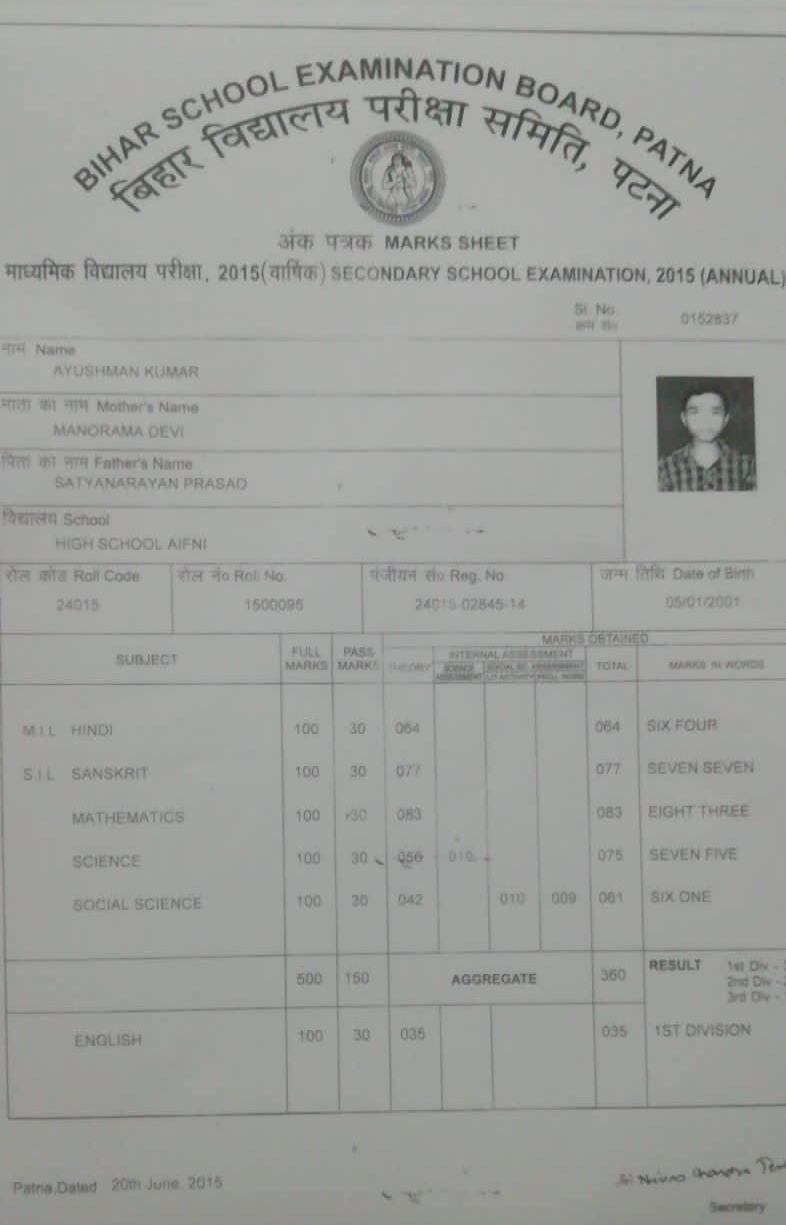 | Exam | Full Marks | Pass Marks | Marks Obtained |
