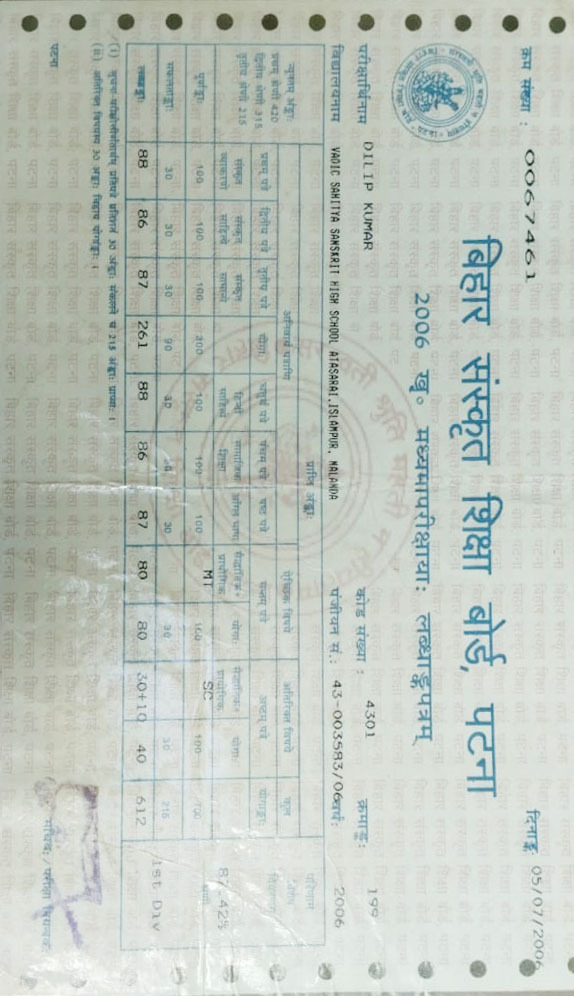 | Exam | Full Marks | Pass Marks | Marks Obtained |