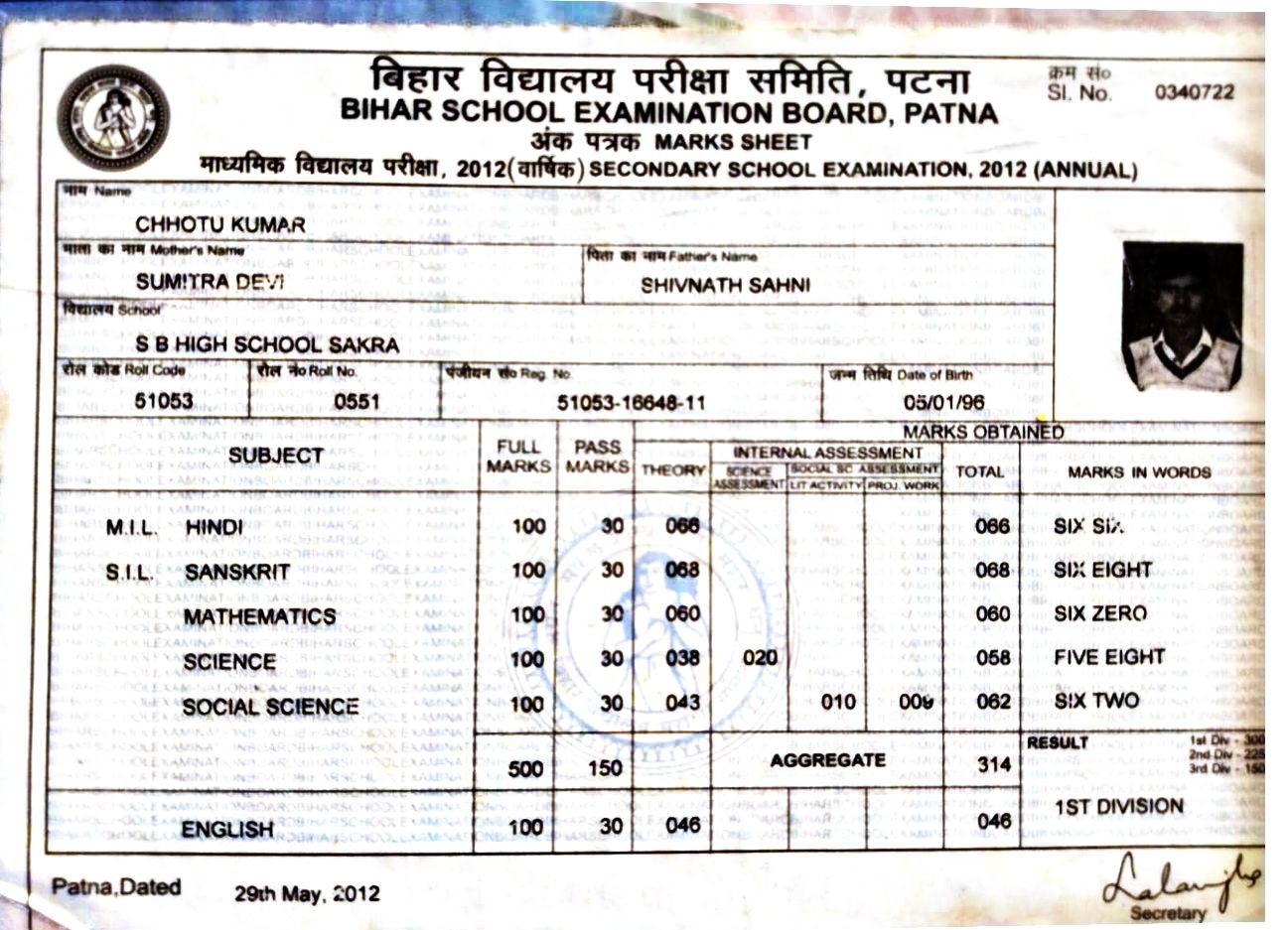 | Exam | Full Marks | Pass Marks | Marks Obtained |