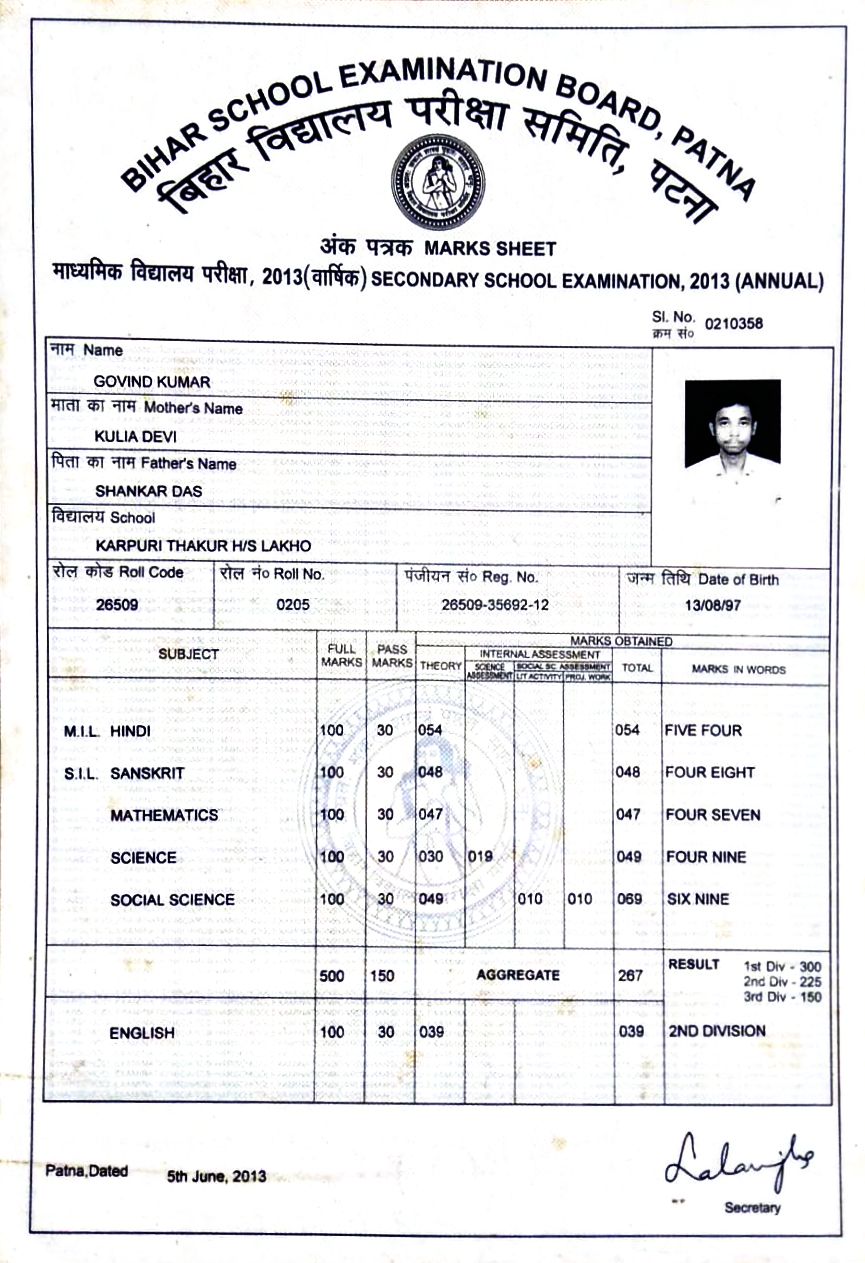 | Exam | Full Marks | Pass Marks | Marks Obtained |