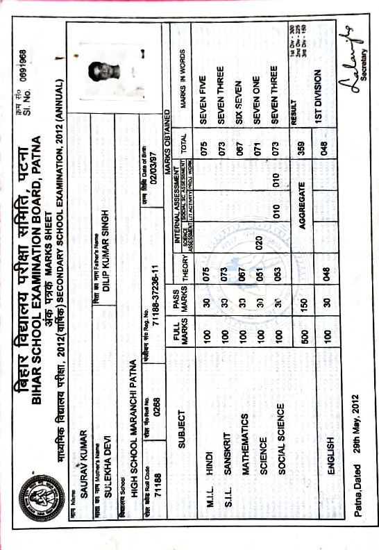 | Exam | Full Marks | Pass Marks | Marks Obtained |