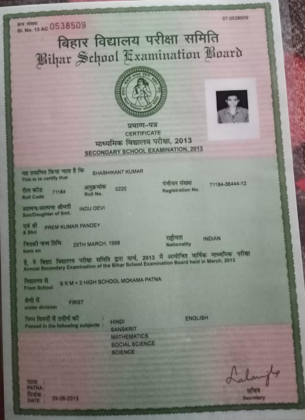 | Exam | Full Marks | Pass Marks | Marks Obtained |