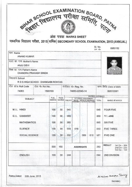 | Exam | Full Marks | Pass Marks | Marks Obtained |