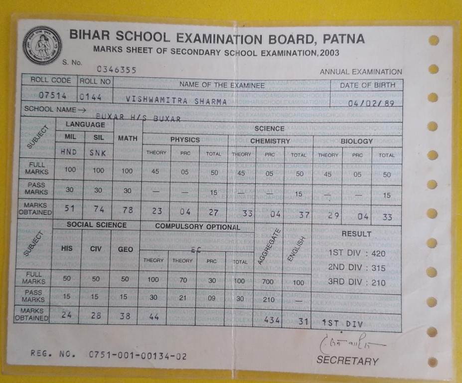 | Exam | Full Marks | Pass Marks | Marks Obtained |