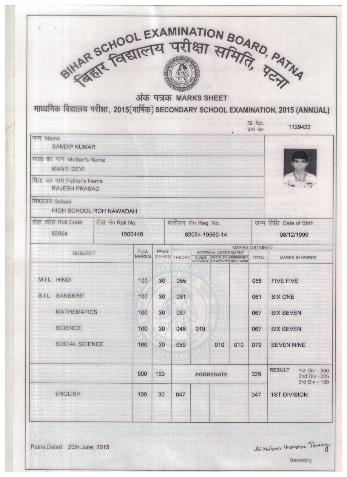 | Exam | Full Marks | Pass Marks | Marks Obtained |