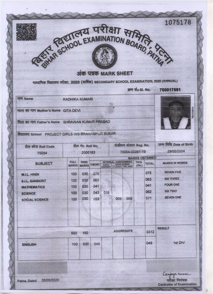 | Exam | Full Marks | Pass Marks | Marks Obtained |