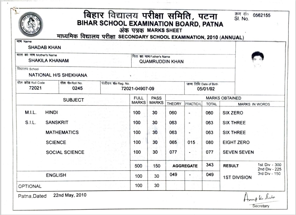 | Exam | Full Marks | Pass Marks | Marks Obtained |