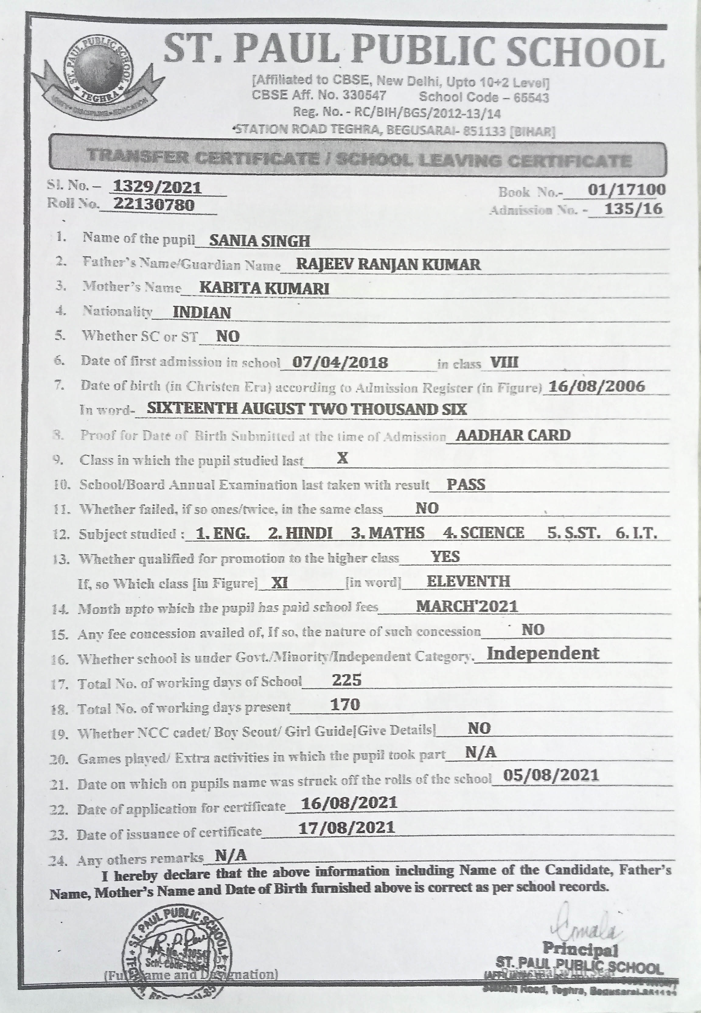 | : | Kabita Kumari | |