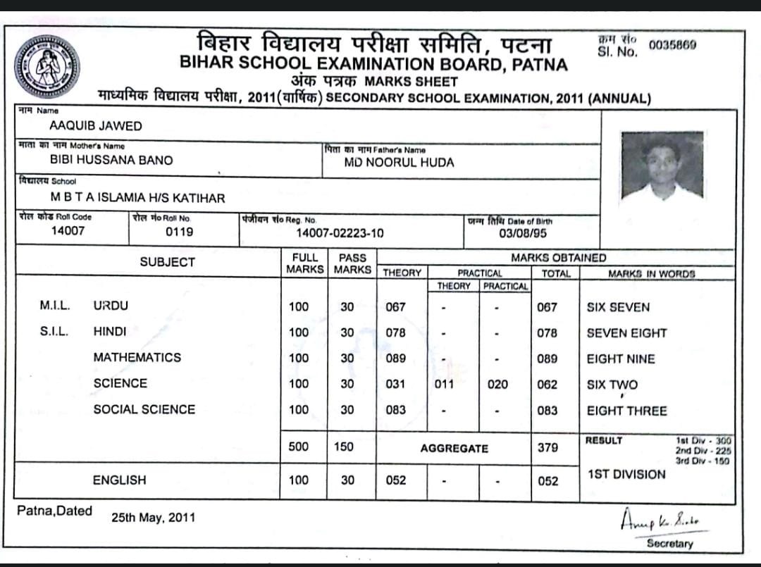 | Exam | Full Marks | Pass Marks | Marks Obtained |