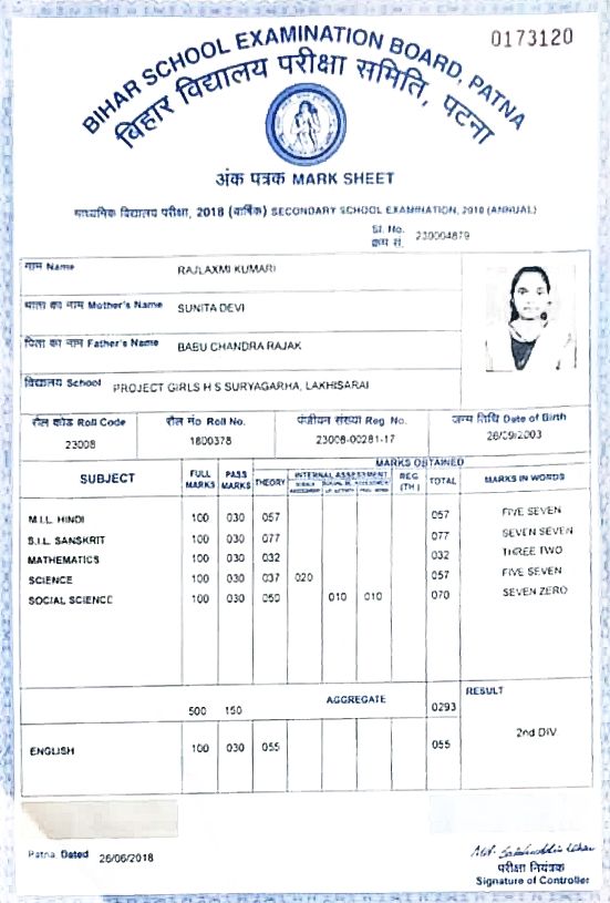 | Exam | Full Marks | Pass Marks | Marks Obtained |