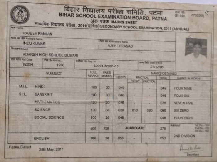 | Exam | Full Marks | Pass Marks | Marks Obtained |