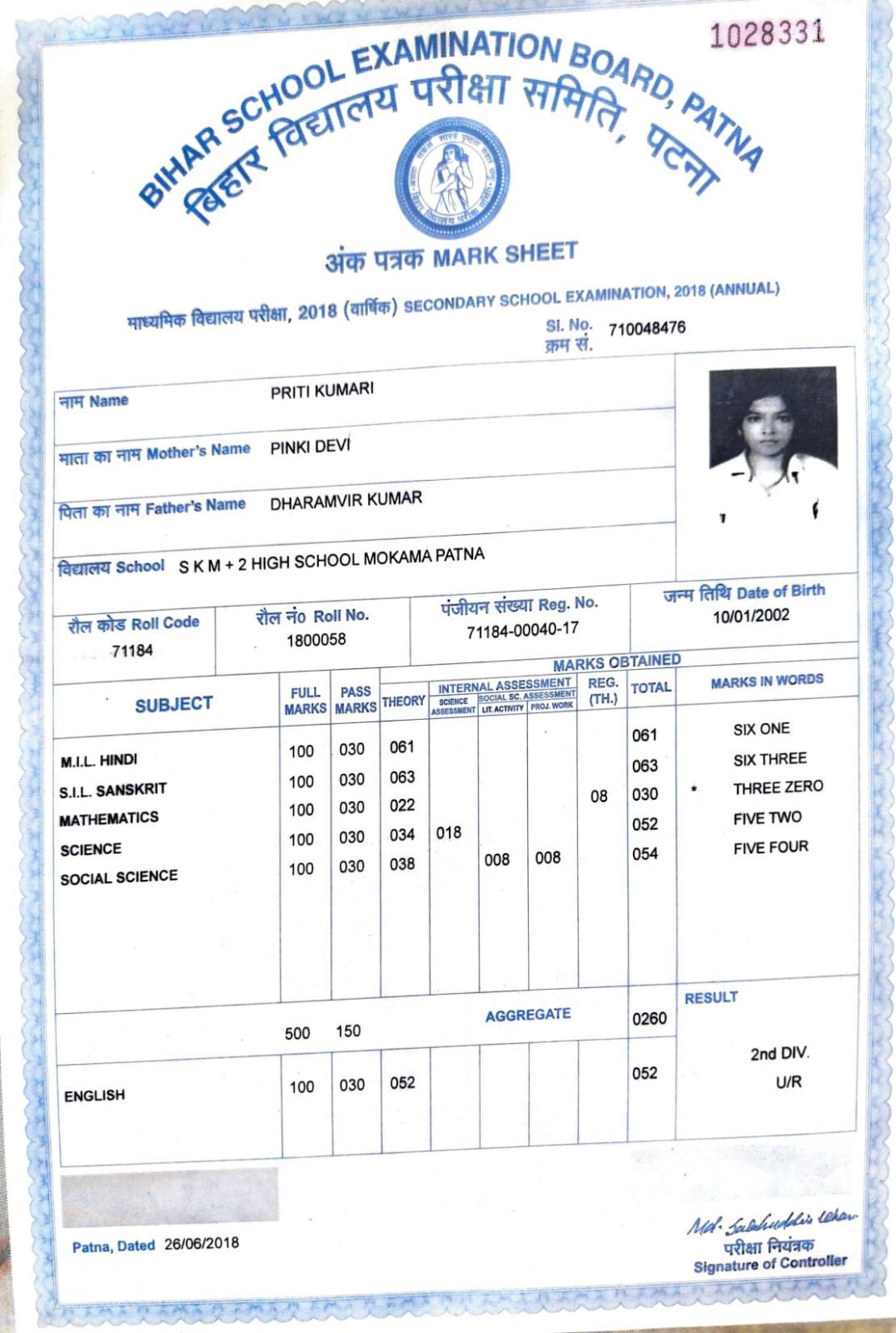| Exam | Full Marks | Pass Marks | Marks Obtained |