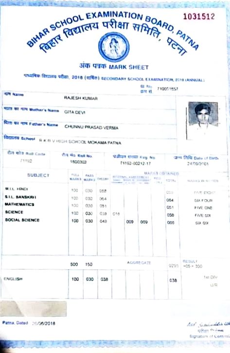 | Exam | Full Marks | Pass Marks | Marks Obtained |