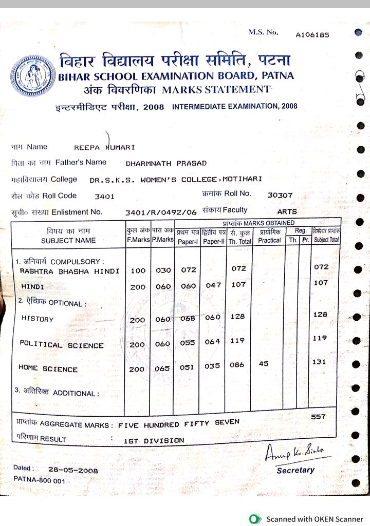 | Exam | Full Marks | Pass Marks | Marks Obtained |