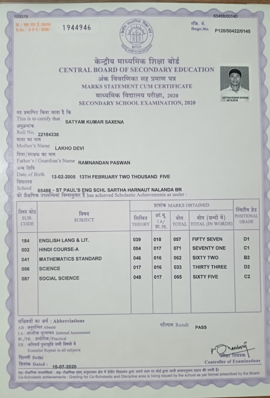 | Exam | Full Marks | Pass Marks | Marks Obtained |