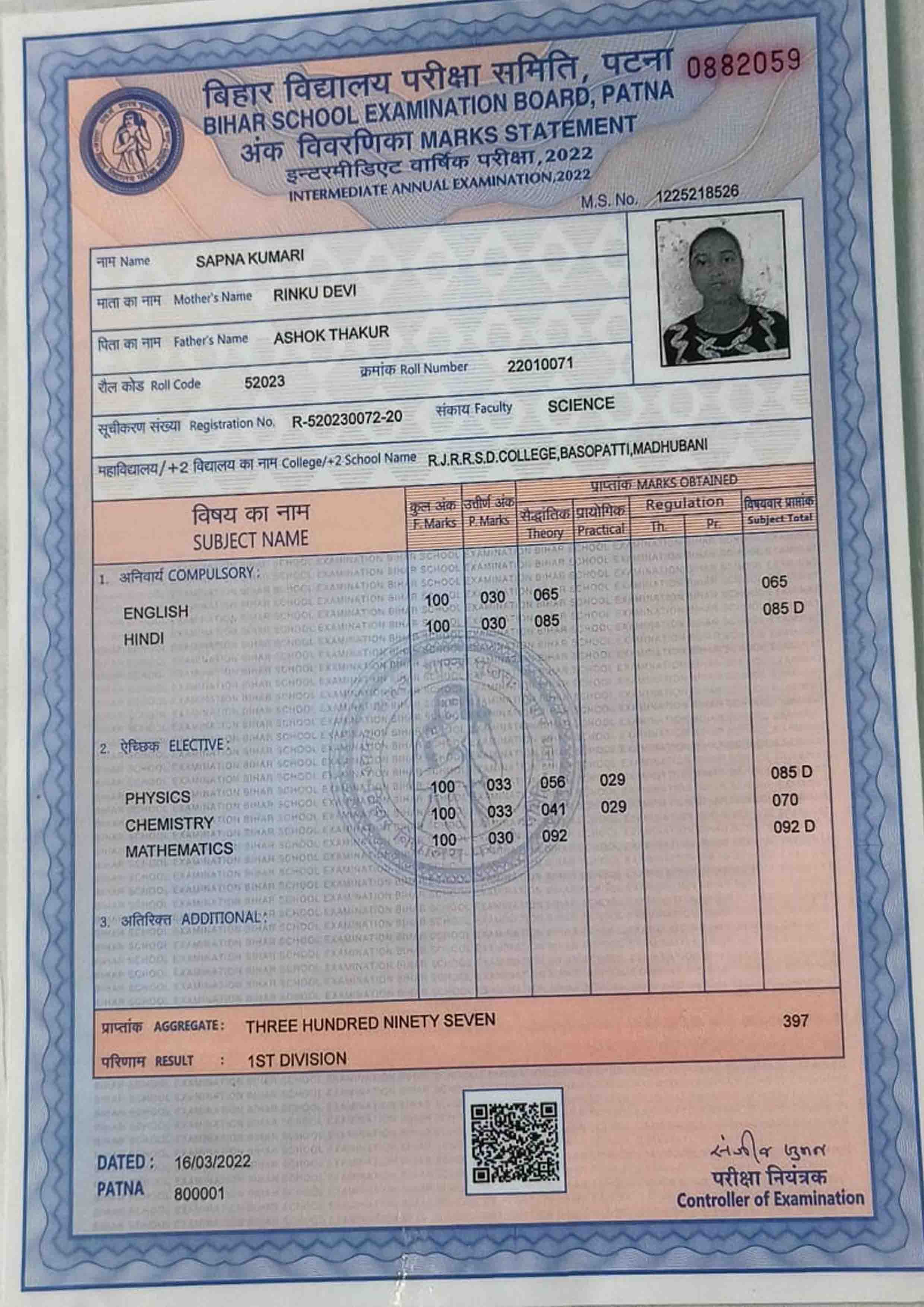 | Exam | Full Marks | Pass Marks | Marks Obtained |