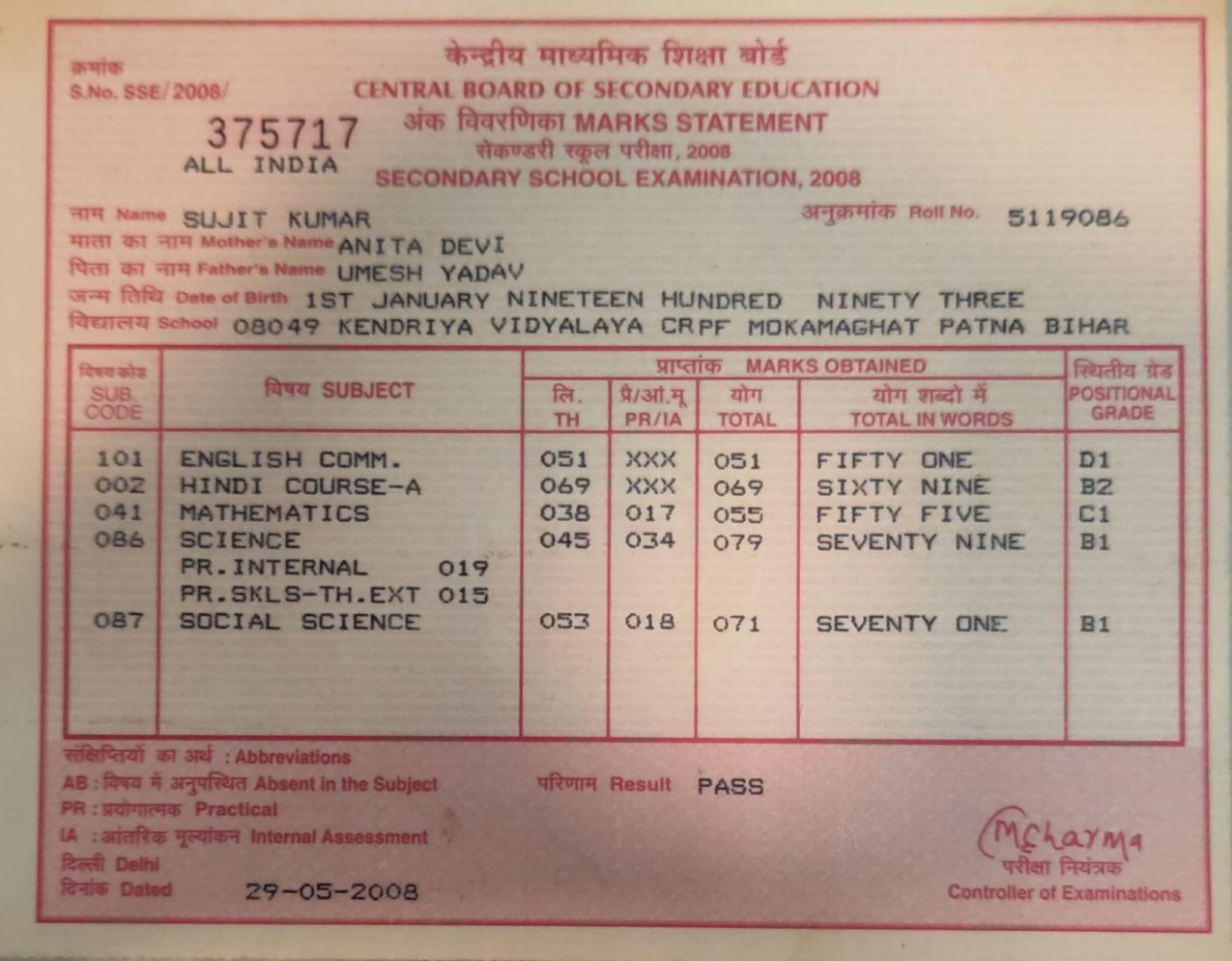 | Exam | Full Marks | Pass Marks | Marks Obtained |