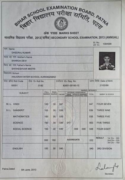 | Exam | Full Marks | Pass Marks | Marks Obtained |