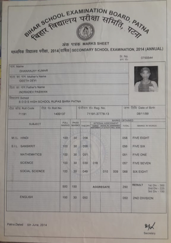 | Exam | Full Marks | Pass Marks | Marks Obtained |