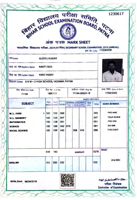 | Exam | Full Marks | Pass Marks | Marks Obtained |