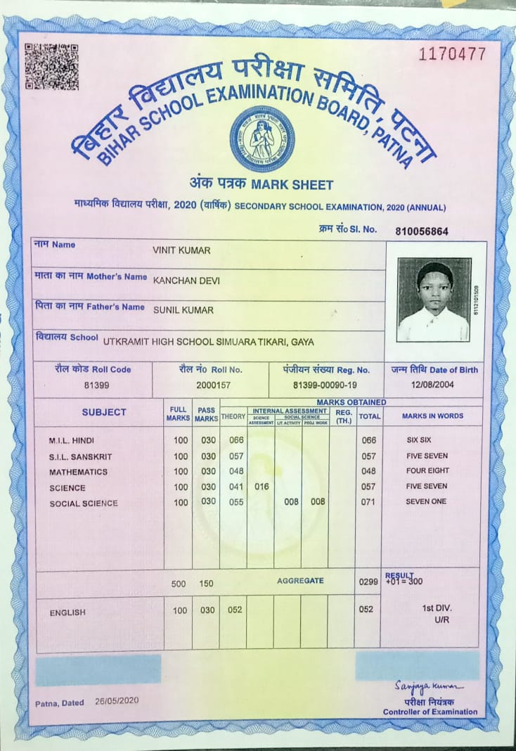 | Exam | Full Marks | Pass Marks | Marks Obtained |