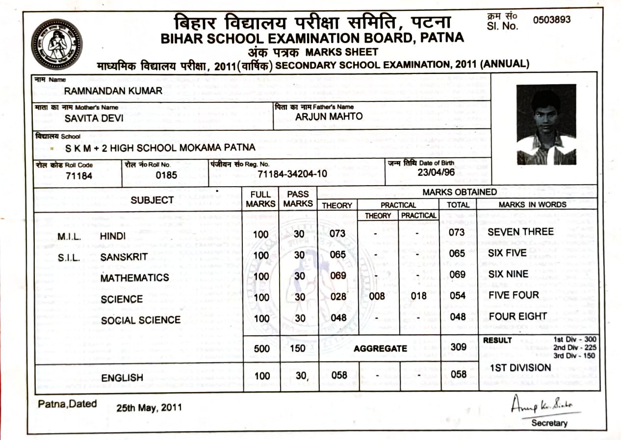 | Exam | Full Marks | Pass Marks | Marks Obtained |