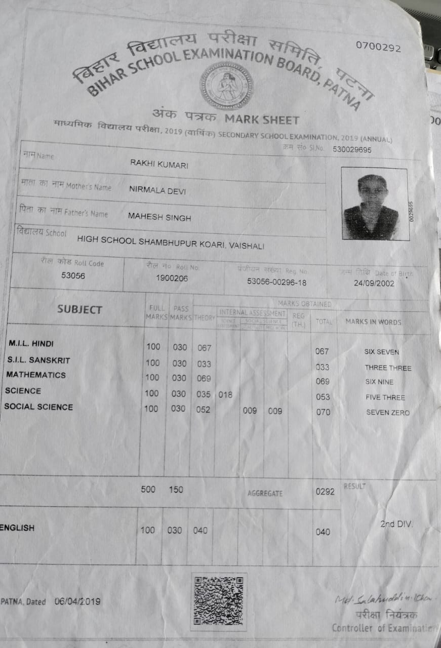 | Exam | Full Marks | Pass Marks | Marks Obtained |