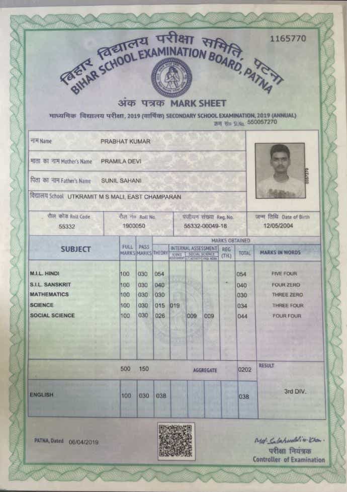 | Exam | Full Marks | Pass Marks | Marks Obtained |