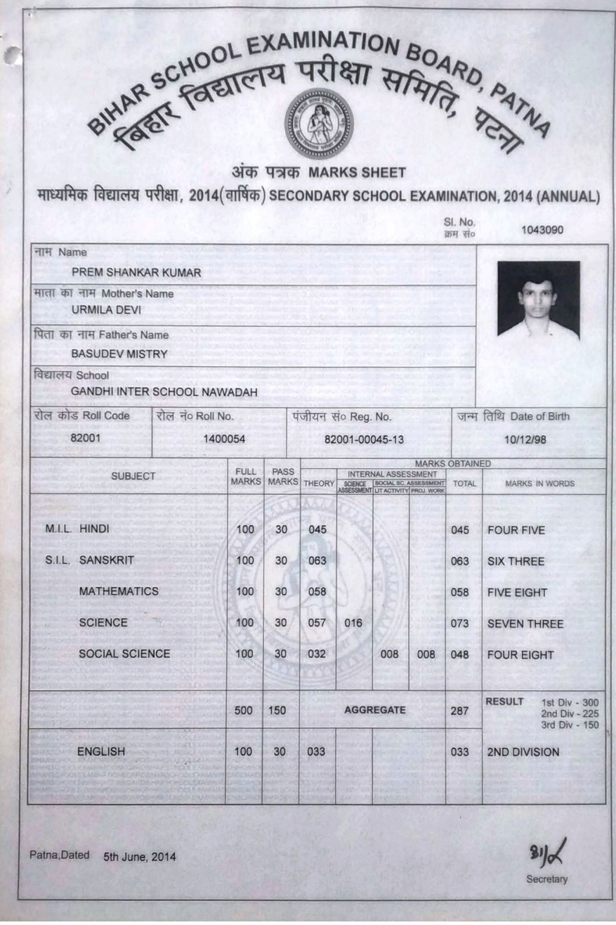 | Exam | Full Marks | Pass Marks | Marks Obtained |