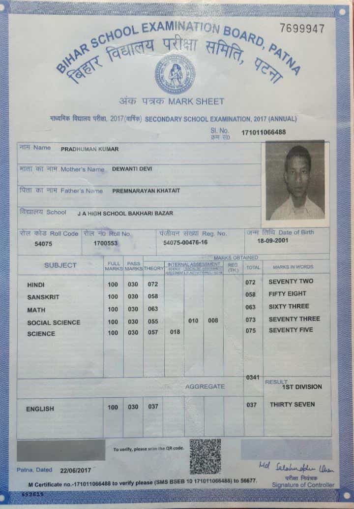 | Exam | Full Marks | Pass Marks | Marks Obtained |