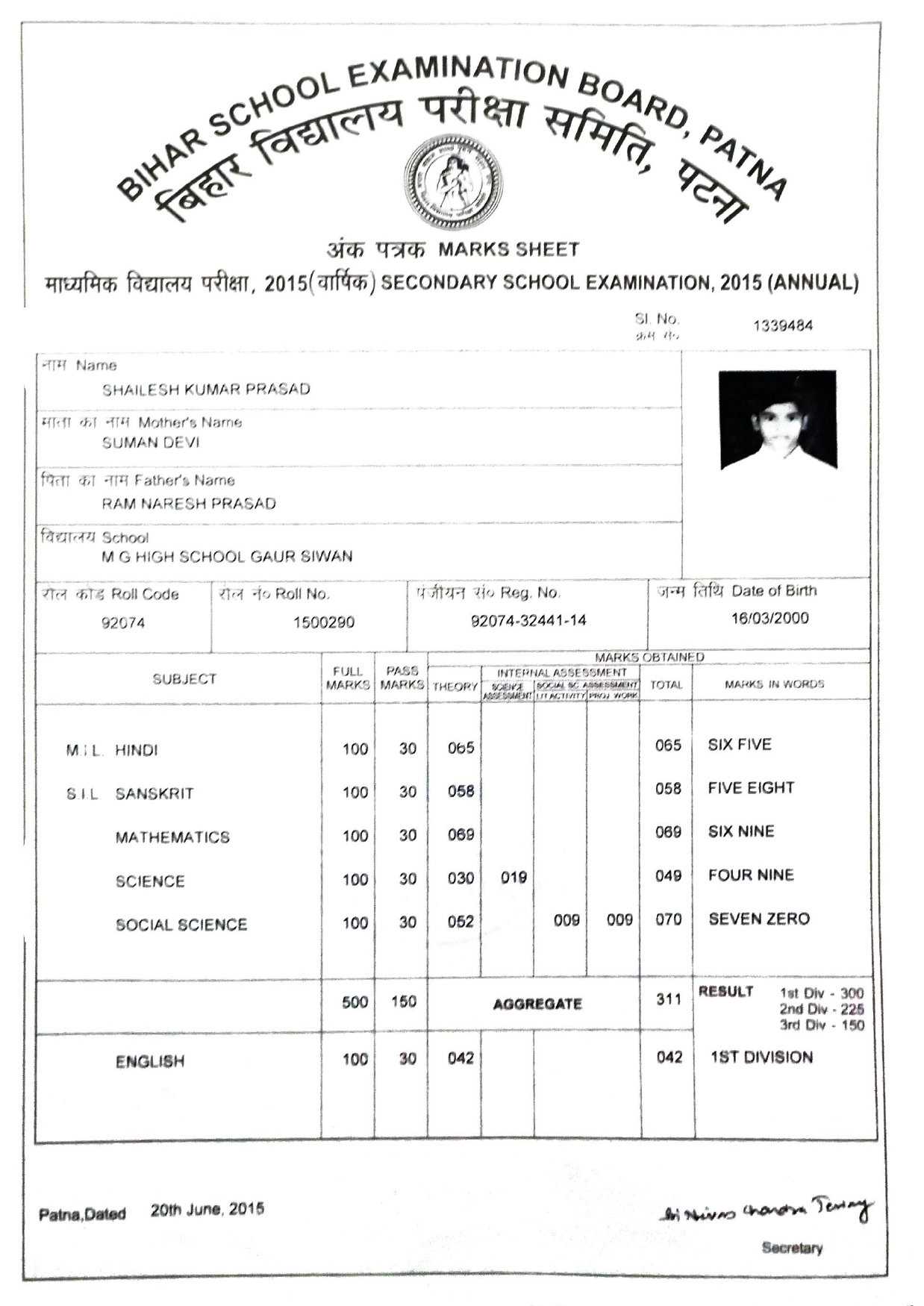 | Exam | Full Marks | Pass Marks | Marks Obtained |