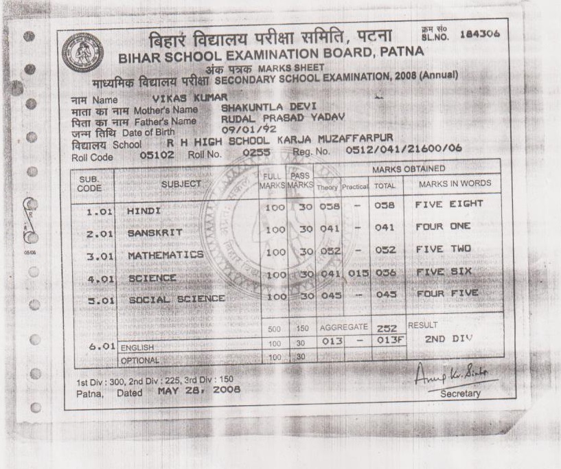 | Exam | Full Marks | Pass Marks | Marks Obtained |
