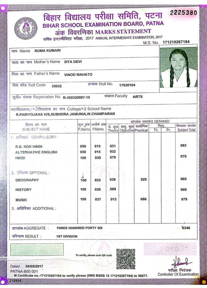 | Exam | Full Marks | Pass Marks | Marks Obtained |