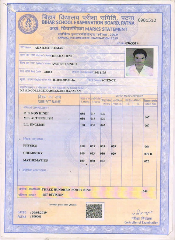 | Exam | Full Marks | Pass Marks | Marks Obtained |