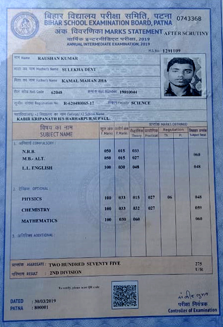 | Exam | Full Marks | Pass Marks | Marks Obtained |