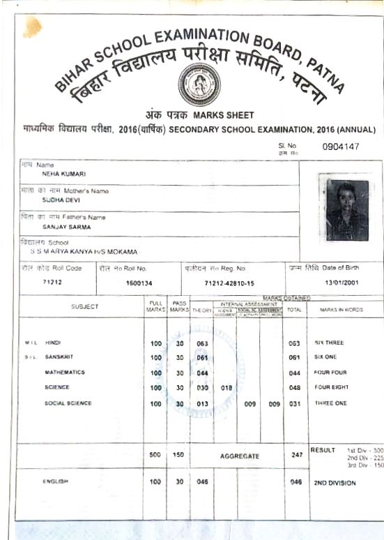 | Exam | Full Marks | Pass Marks | Marks Obtained |