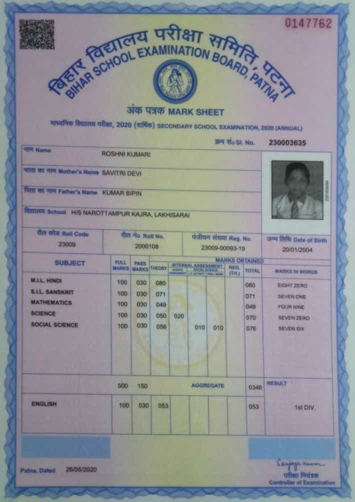 | Exam | Full Marks | Pass Marks | Marks Obtained |
