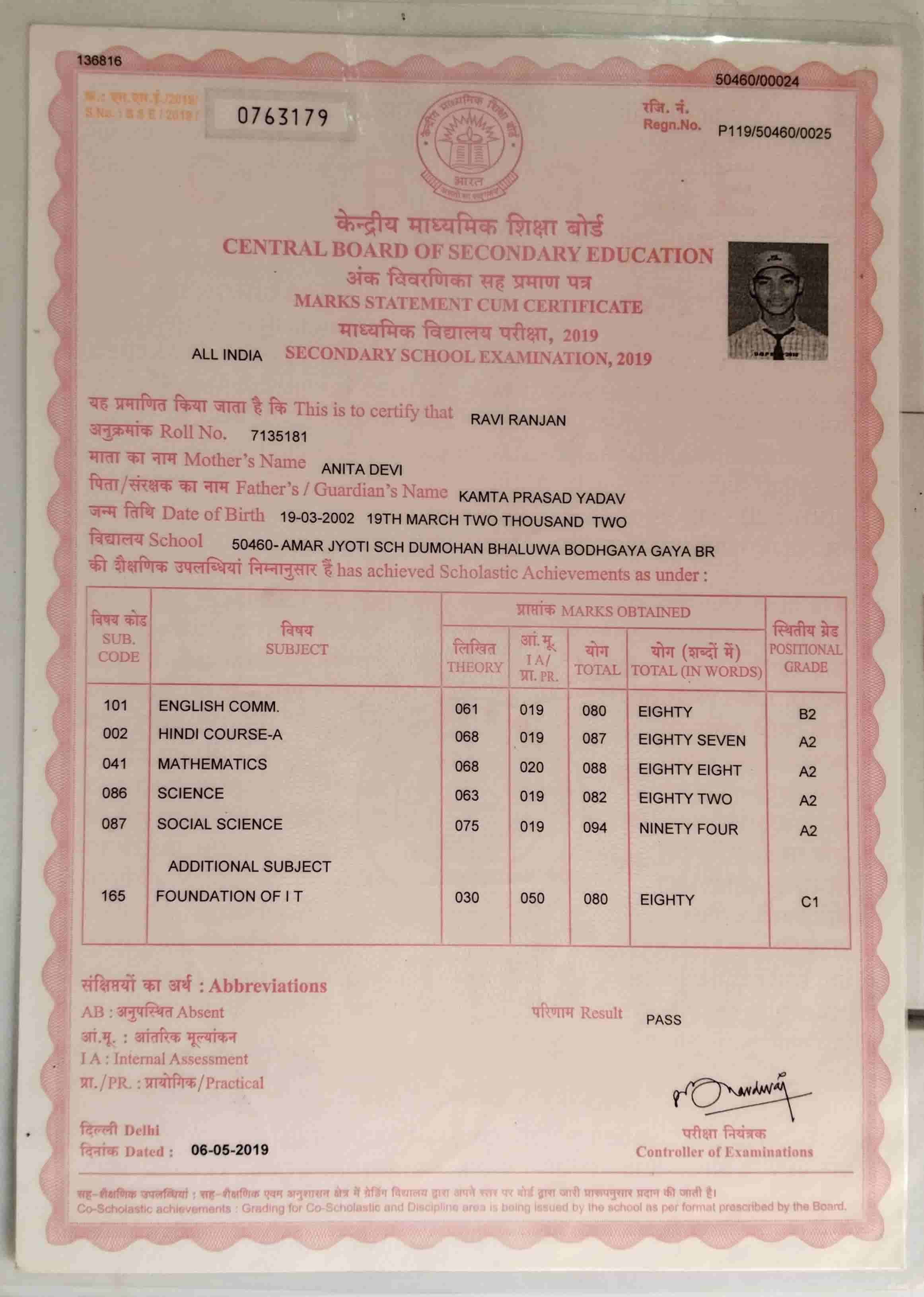 | Exam | Full Marks | Pass Marks | Marks Obtained |