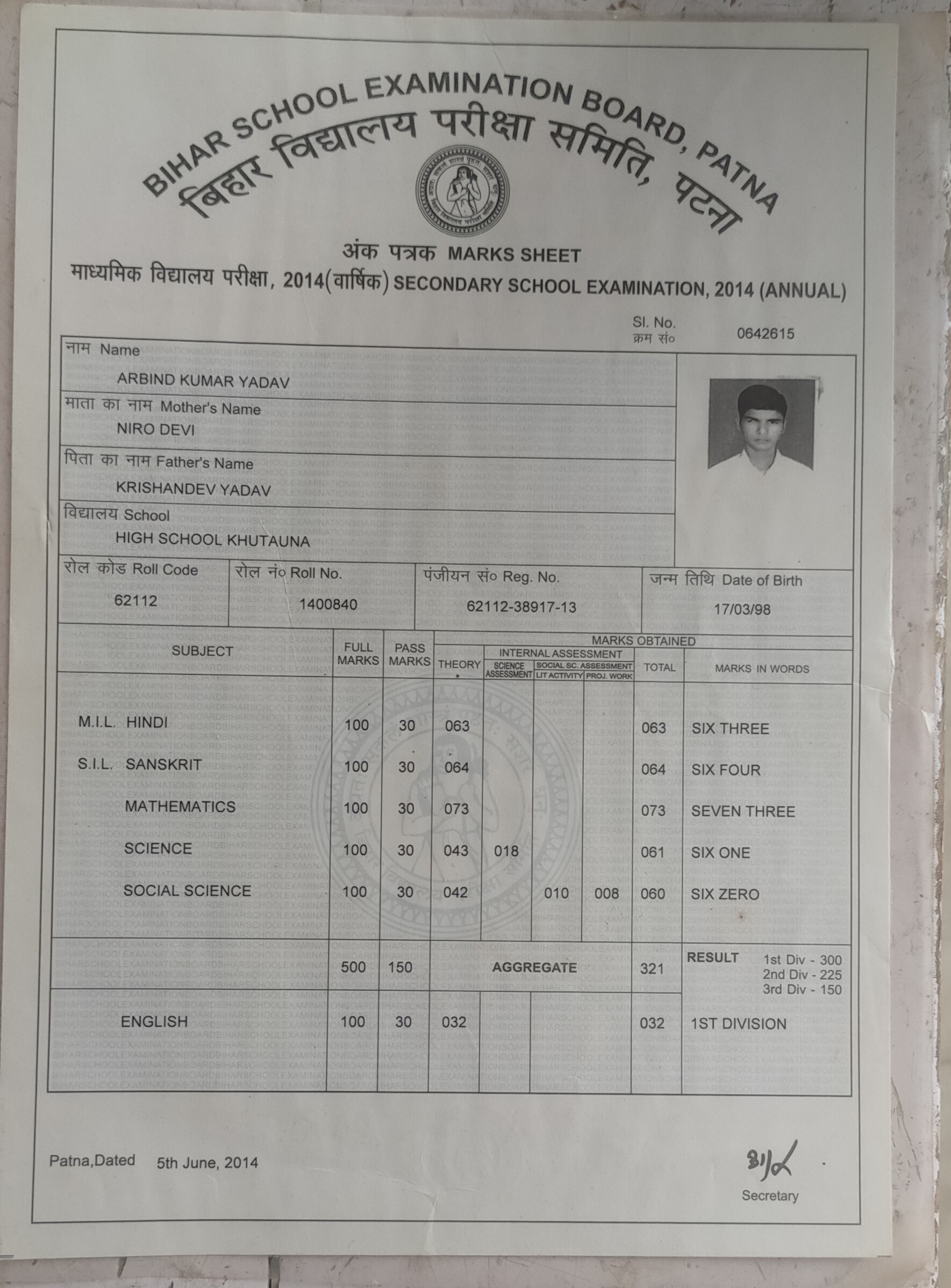 | Exam | Full Marks | Pass Marks | Marks Obtained |