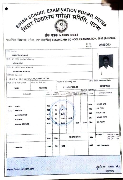 | Exam | Full Marks | Pass Marks | Marks Obtained |