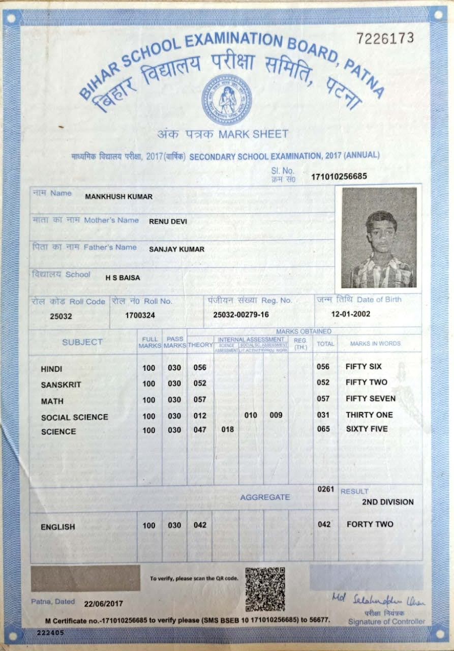 | Exam | Full Marks | Pass Marks | Marks Obtained |