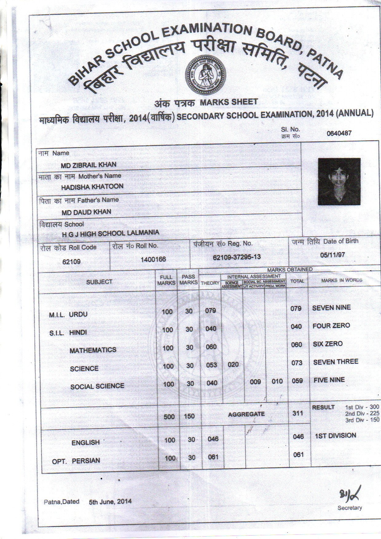 | Exam | Full Marks | Pass Marks | Marks Obtained |