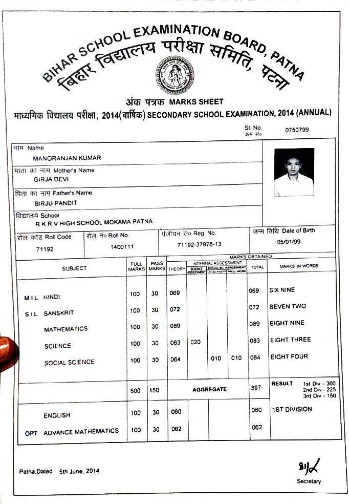 | Exam | Full Marks | Pass Marks | Marks Obtained |