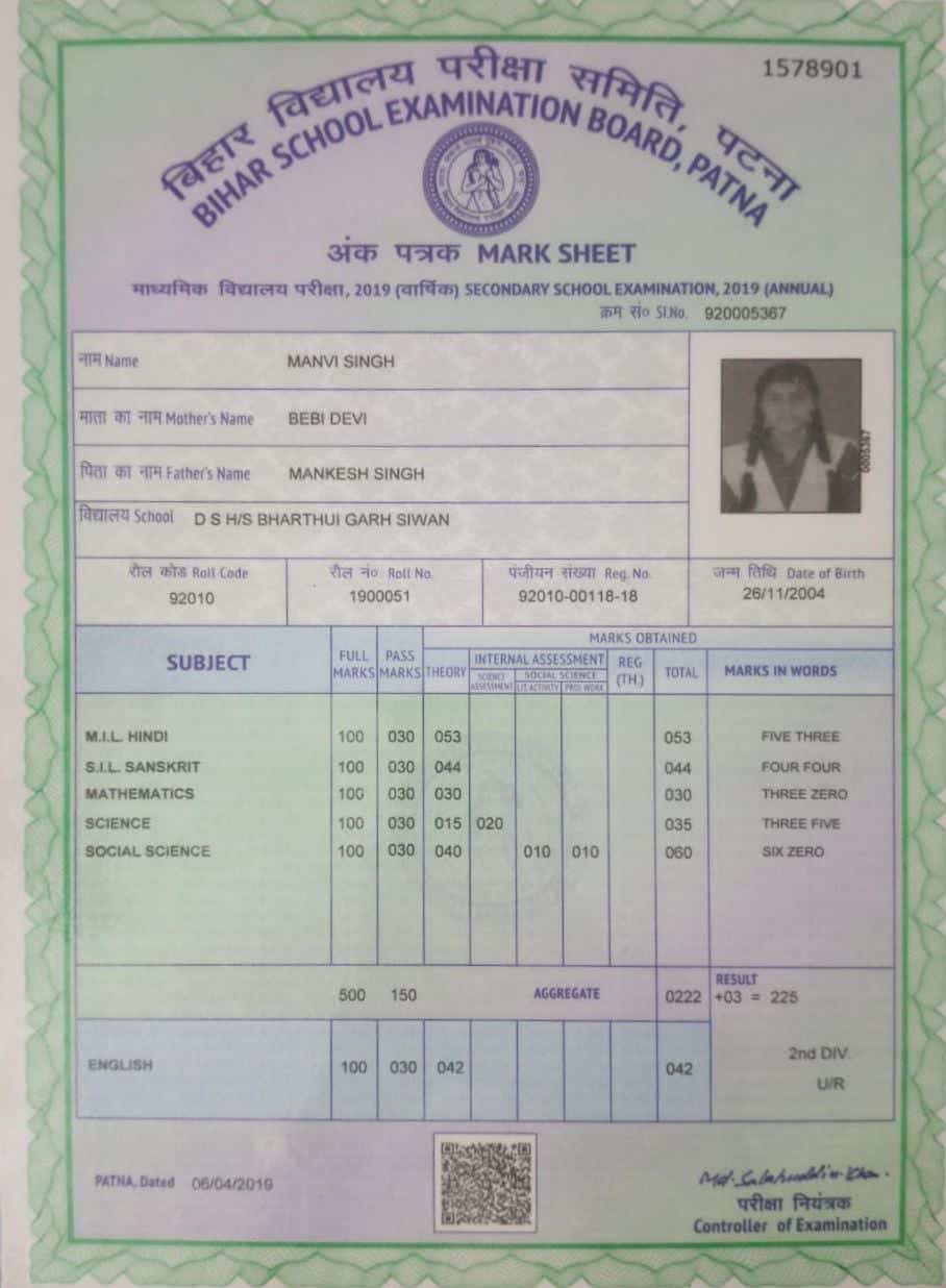 | Exam | Full Marks | Pass Marks | Marks Obtained |