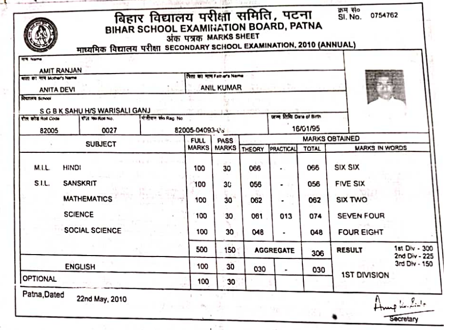 | Exam | Full Marks | Pass Marks | Marks Obtained |