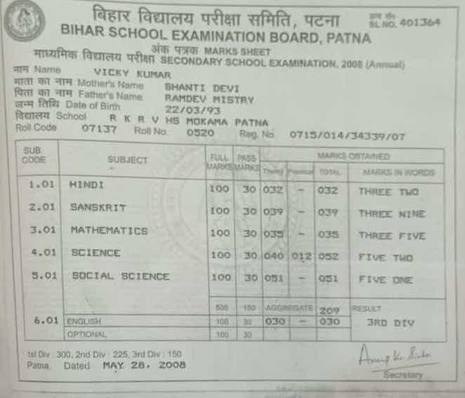 | Exam | Full Marks | Pass Marks | Marks Obtained |