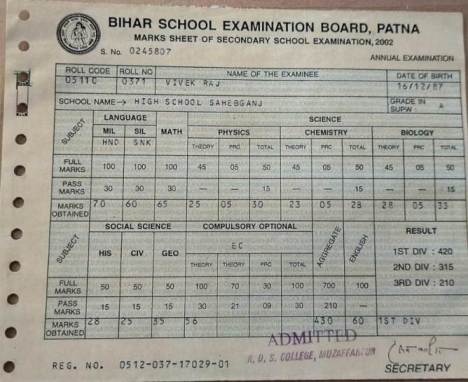 | Exam | Full Marks | Pass Marks | Marks Obtained |