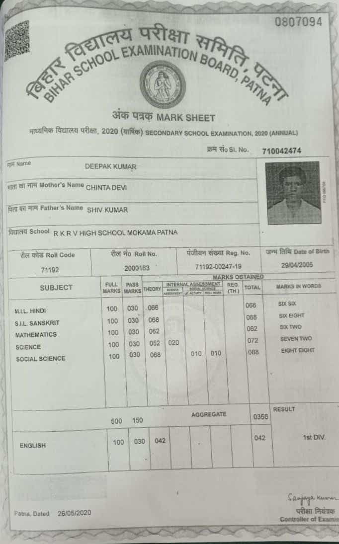 | Exam | Full Marks | Pass Marks | Marks Obtained |